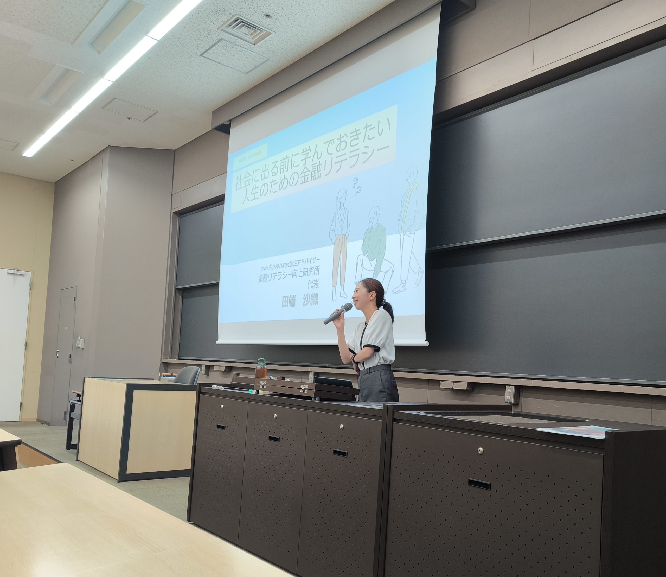 みんなの金融教育協会(FiNA)では、2025年6月27日明治大学政治経済学部勝悦子教授の授業の約70名の学生の皆さんに、「社会に出る前に学んでおくべき人生のための金融リテラシー」というテーマで講義をしました。