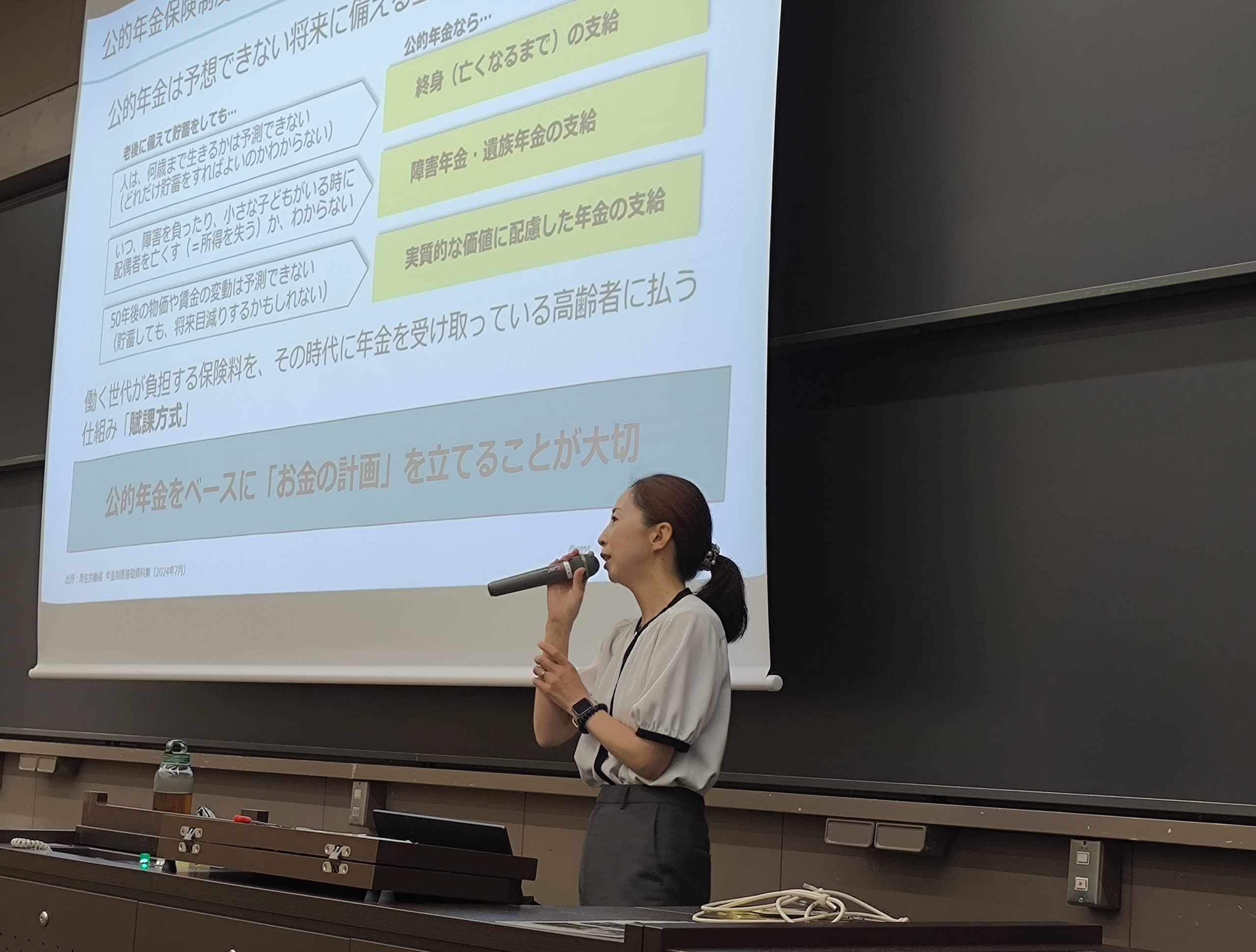 次に、「年金制度」についての話題では、不信感や将来自分たちは年金もらえないのではないかという漠然とした不安について、それらを払拭する内容をお話しました。日本の年金制度の構造や将来的な財政検証、そして制度改革などの対策を踏まえて、無用な不安をなくし、しっかりと制度を把握することに努めました。